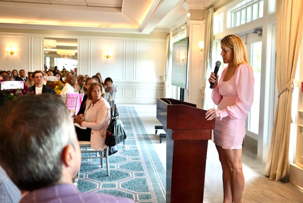 Reminding everyone in the room that “Together we are stronger than breast cancer. Our community is stronger than breast cancer,” Valerie credited the skilled care of dedicated doctors and the unwavering support of friends for helping her through what she described as the most challenging chapter of her life. She closed with a message of resilience and unity: “Being a survivor doesn’t mean someone finished fighting. The battle continues with support.” Valerie’s experience resonated deeply with the audience, reinforcing the Foundation’s mission and importance of every dollar raised.